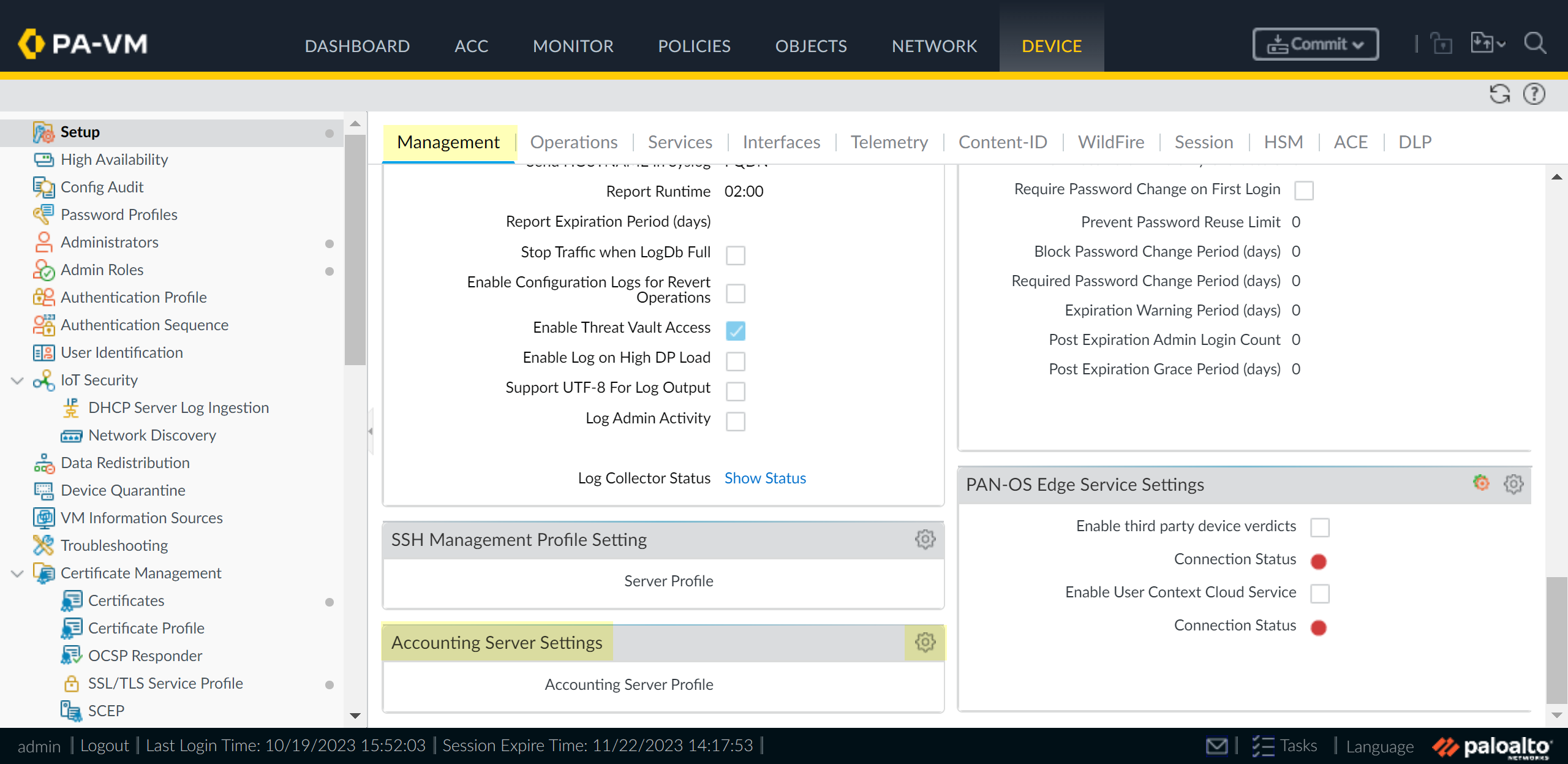 Palo Alto Networks recommends using port number 49 for accounting. This is the default port the firewall uses for accounting.
