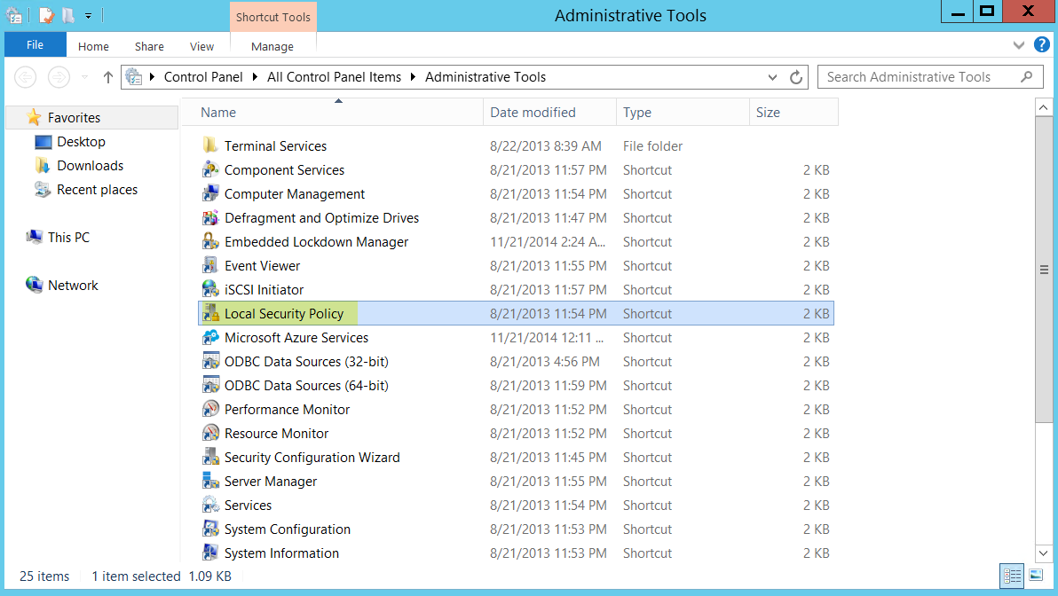 The permission to log on as a service is only needed locally on the Windows server that is the agent host. If you are using only one User-ID agent, you can grant the permissions locally on the agent host using the following instructions.- To assign permissions locally, select Control PanelAdministrative ToolsLocal Security Policy.