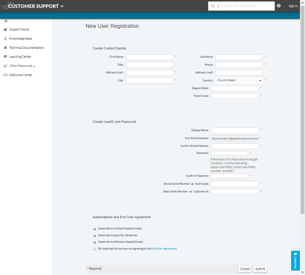 - Go to the Palo Alto Networks Customer Support Portal.