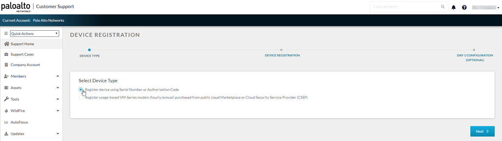 If you do not already have an active Palo Alto Networks support account, then you