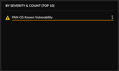 • BY SEVERITY & COUNT (TOP 10): Displays the incidents categorized by severity, along with the count of incidents in each category. Critical incidents are prioritized first, followed by warning incidents, and then informational incidents.