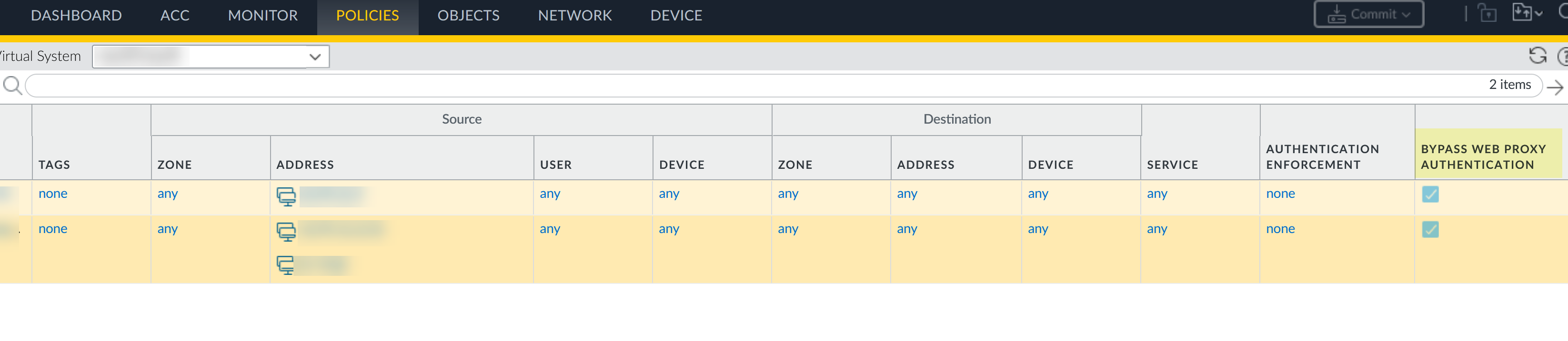 Define the type of proxy traffic that you want to exempt from authentication in your authentication policy rule and Commit your changes.You can exempt a source, a destination, or both.- Select the Source tab then select the address object you configured in the first step as the Source Address and click OK.