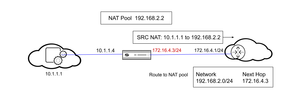 In our second scenario, the NAT pool address (192.168.2.2) isn't a subnet of an