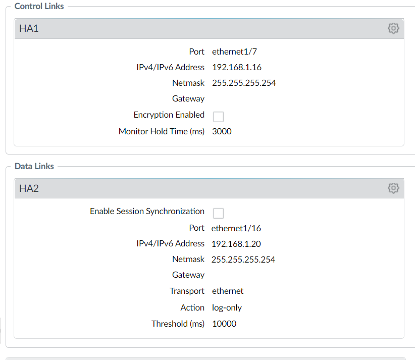 high availability settings on the firewall:
