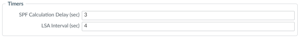 The following command sets the LSA-generation and SPF delays: