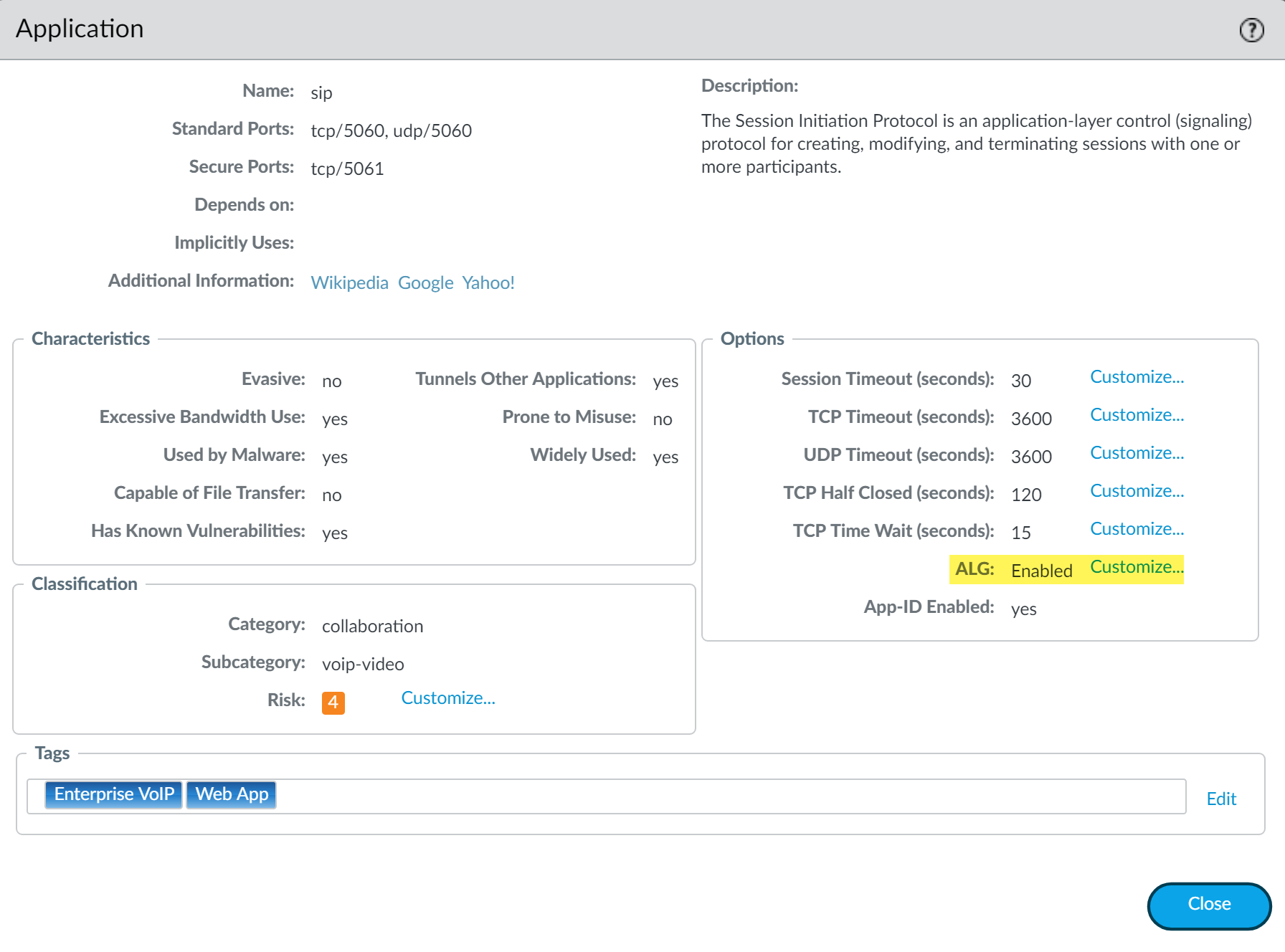 is to disable the SIP ALG, which does not disable App-ID or threat