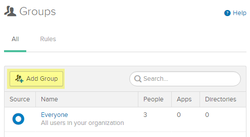 Create one or more user groups to categorize your users (for example, by device, by policy, or by department) and assign the Okta Verify application.- Select DirectoryGroups.