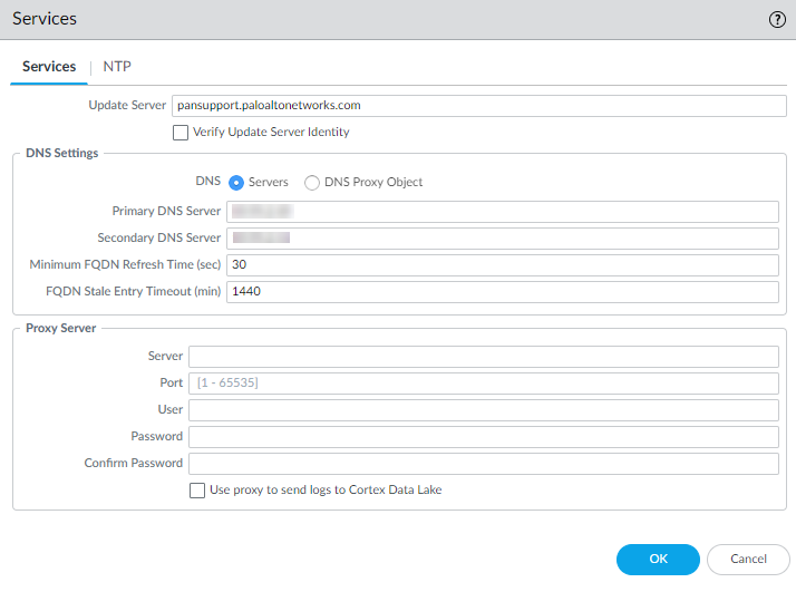13. Verify network access to external services required for firewall management, such as the Palo Alto Networks Update Server.