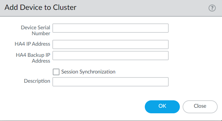 Configure the HA4 Backup link by editing the HA4 Backup section in a similar manner.Specify all members of the HA cluster, including the local member and both HA peers in any HA pair.- Select Cluster Config.Add a peer member’s Device Serial Number.Enter the remaining device information.