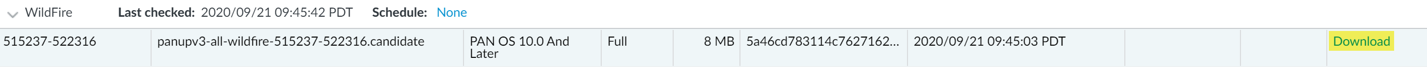 latest content and software updates published by Palo Alto Networks.