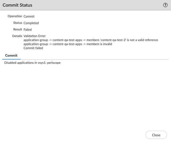 in an Application Group), commit actions fail until those applications are