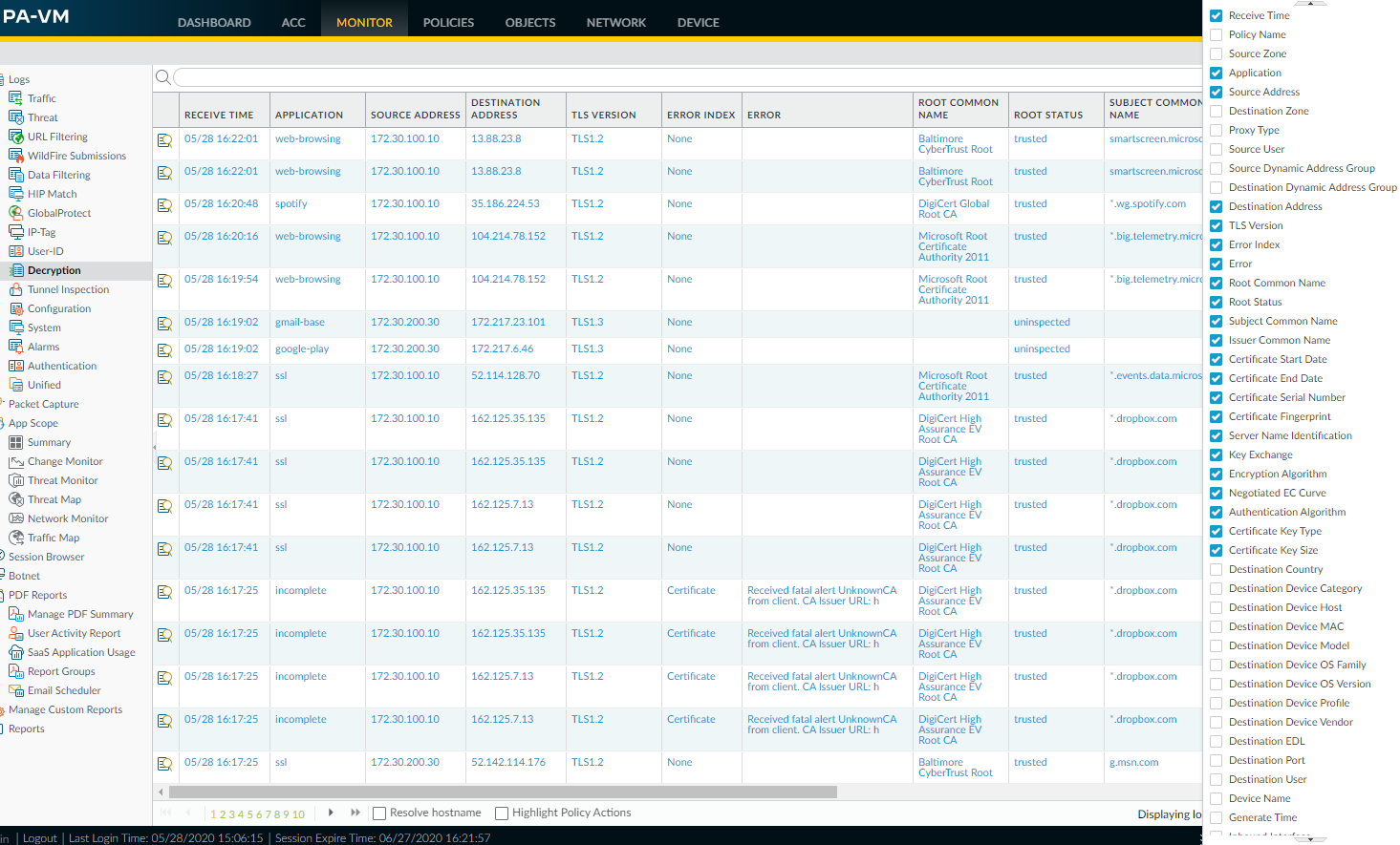 the Decryption log. If Traffic logs are disabled, the App-ID shows