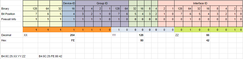 zeroes. Now suppose the firewall Group ID is 58. The number 58 in binary is 111010, as
