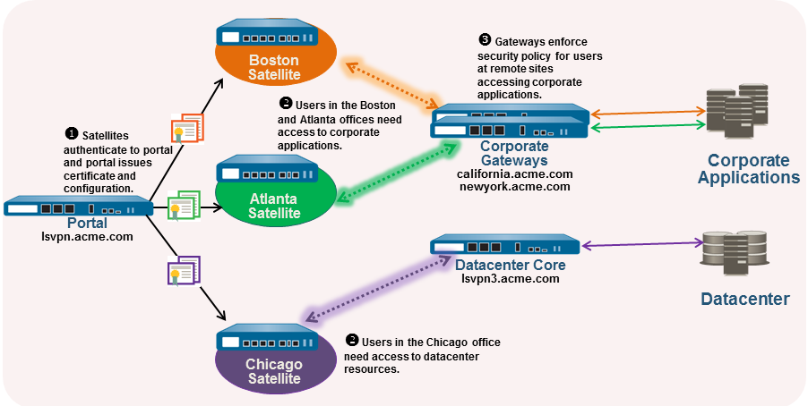 - Select NetworkGlobalProtectPortals and select the portal configuration for which you want to add a satellite configuration and then select the Satellite tab.In the Satellite section, click Add.Enter a Name for the configuration.If you plan to create multiple configurations, make sure that the name you define for each is descriptive enough to allow you to distinguish them.To change how often a satellite should check the portal for configuration updates, specify a value in the Configuration Refresh Interval (hours) field (range is 1-48; default is 24).Specify the satellites to which to deploy this configuration.The portal uses the Enrollment User/User Group settings and/or Devices serial numbers to match a satellite to a configuration. Therefore, if you have multiple configurations, be sure to order them properly. As soon as the portal finds a match, it will deliver the configuration. Therefore, more specific configurations must precede more general ones. See step 5 for instructions on ordering the list of satellite configurations.Specify the match criteria for the satellite configuration as follows: