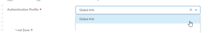 6. If you selected Kerberos Single Sign On, specify the Authentication Profile that you created when configuring Kerberos.