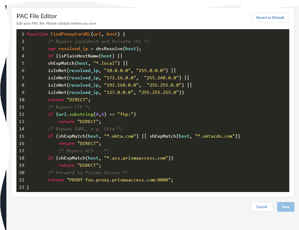 1. Select ManageConfigurationNGFW and Prisma AccessDevice SettingsProxyProxy Auto Configuration