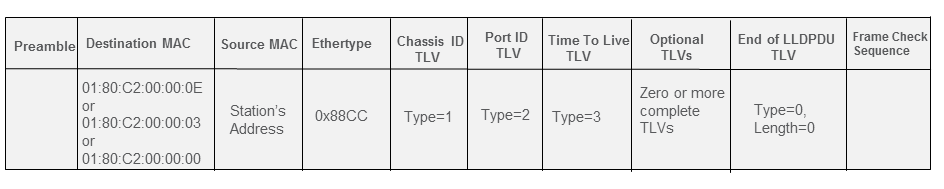 Within the LLDP Ethernet frame, the TLV structure has the following