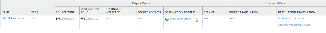 IP address to be translated, a destination NAT rule from zone Untrust-L3