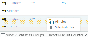 rules and reset hit count statistics only for the Selected
