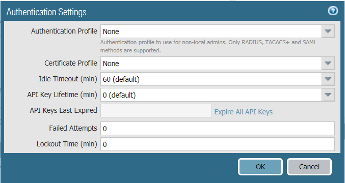 2. Edit Authentication Settings to specify the API Key Lifetime (min).
