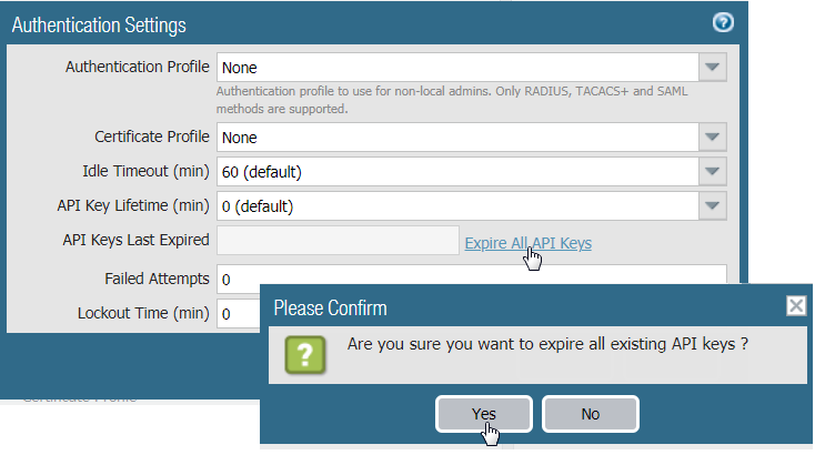4. (To revoke all API keys) Select Expire all API Keys to reset currently valid API keys.