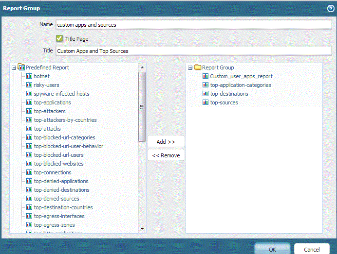 4. Select reports from the left column and click Add to move each report to the report group on the right.