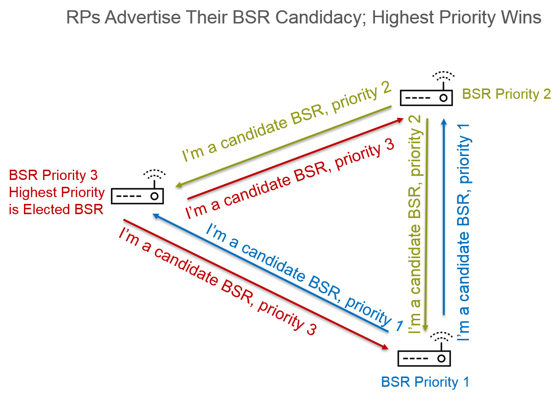 candidate with the largest priority is elected BSR, as shown in the following figure: