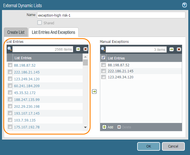 displayed are based on the version of the external dynamic list