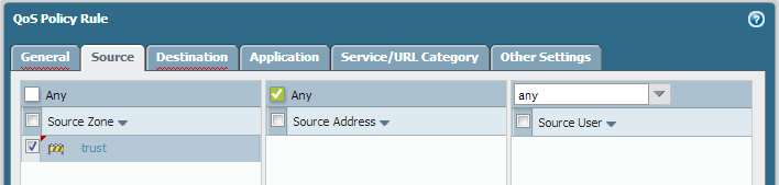 Click OK to save the QoS profile.Create a QoS policy.In an environment with multiple virtual systems, traffic spans more than one virtual system. Because of this, when you are enabling QoS for a virtual system, you must define traffic to receive QoS treatment based on source and destination zones. This ensures that the traffic is prioritized and shaped only for that virtual system (and not for other virtual systems through which the traffic might flow).- Select PoliciesQoS and Add a QoS Policy Rule.Select General and give the QoS Policy Rule a descriptive Name.Specify the traffic to which the QoS policy rule will apply. Use the Source, Destination, Application, and Service/URL Category tabs to define matching parameters for identifying traffic.For example, select Application and Add web-browsing to apply the QoS policy rule to that application: