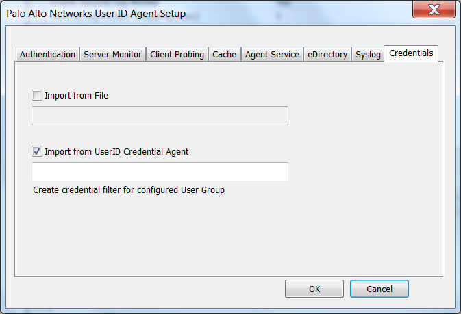 4. Select Import from User-ID Credential Agent. This enables the User-ID agent to import the bloom filter that the User-ID credential agent creates to represent users and the corresponding password hashes.