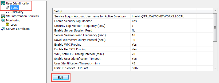2. Enable the User-ID agent and the User Agent Credential service (which runs in the background to scan permitted credentials) to share information.