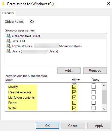 3. Assign account permissions to the installation folder to allow the service account to access the agent’s installation folder to read the configuration and write logs.