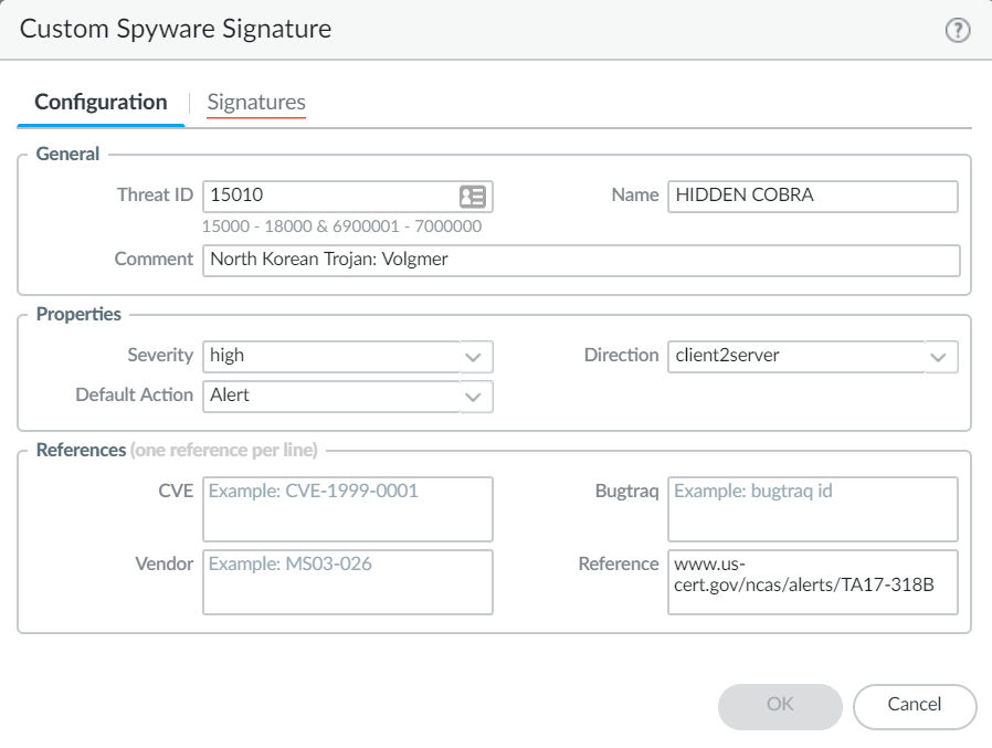 - Create a custom Anti-Spyware or Vulnerability Protection signature.