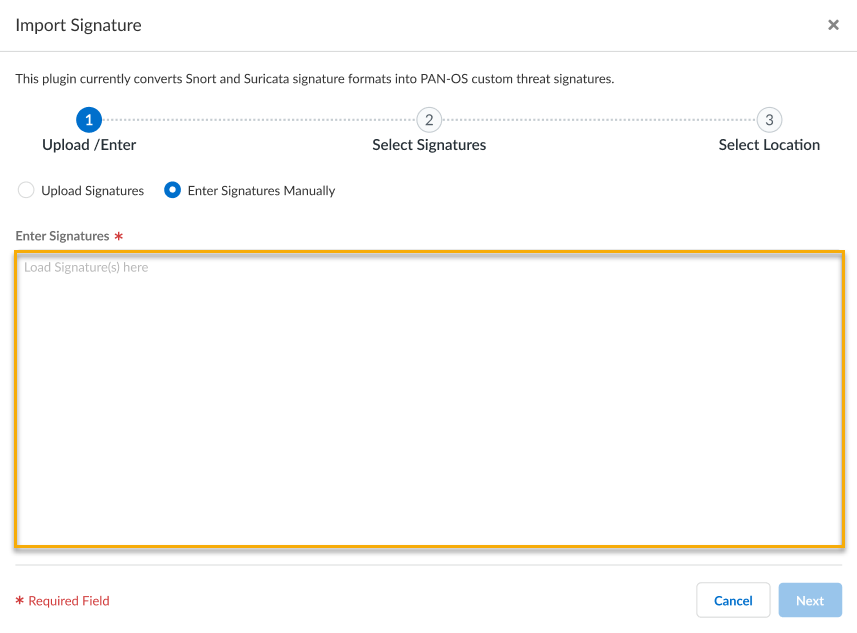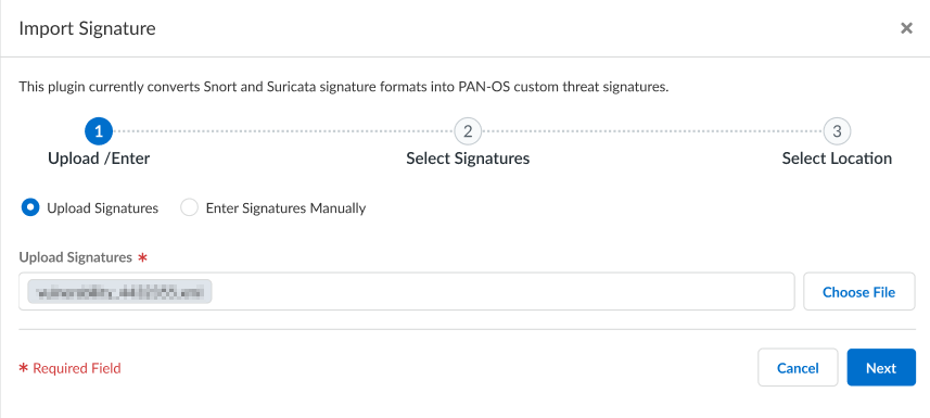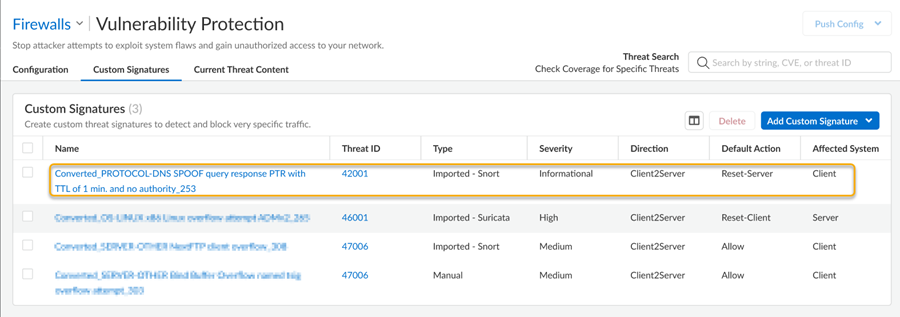 If you use Panorama to manage your NGFWs, you can also use the IPS Signature Converter Plugin for Panorama to convert Snort and Suricata rules into custom Palo Alto Networks threat signatures.