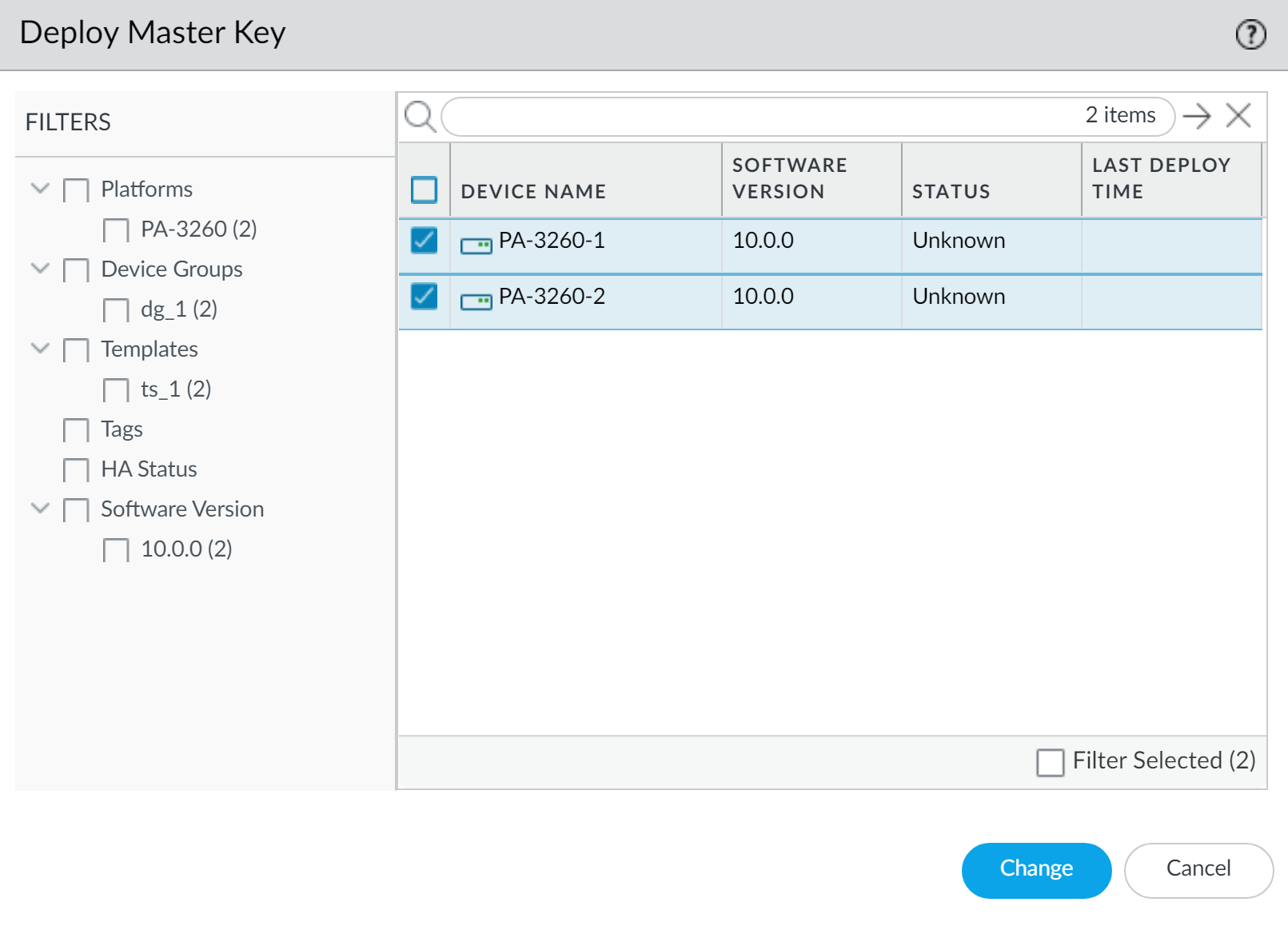 2. Select PanoramaManaged DevicesSummary and Deploy Master Key.