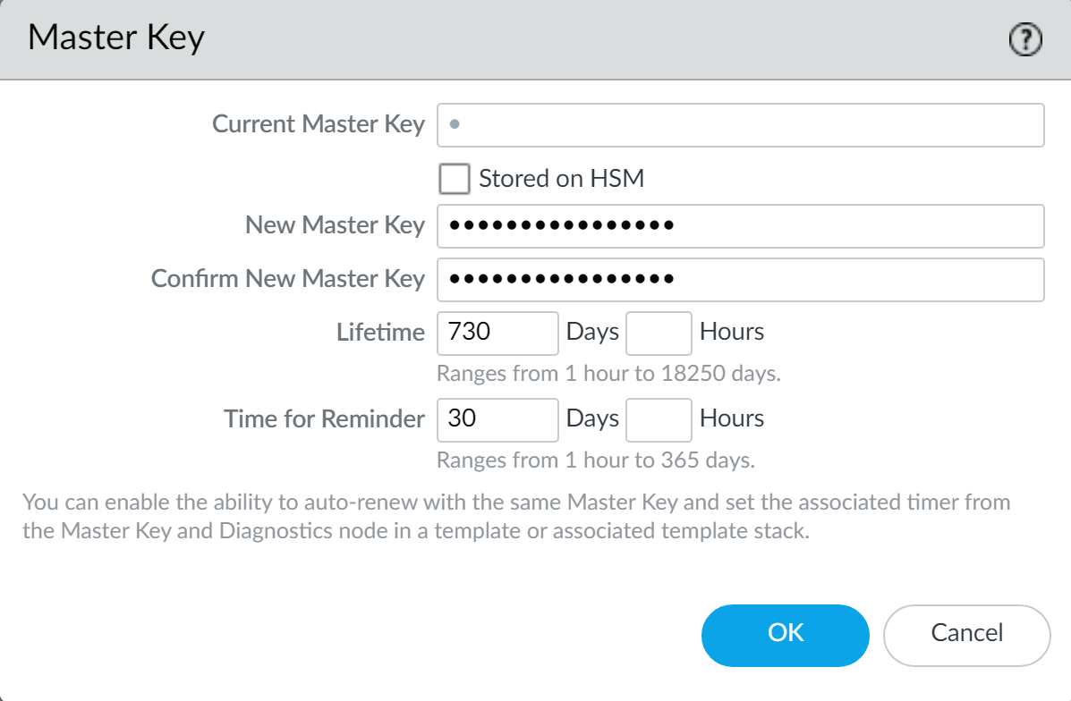 3. (Optional) Configure the Panorama master key to automatically renew.