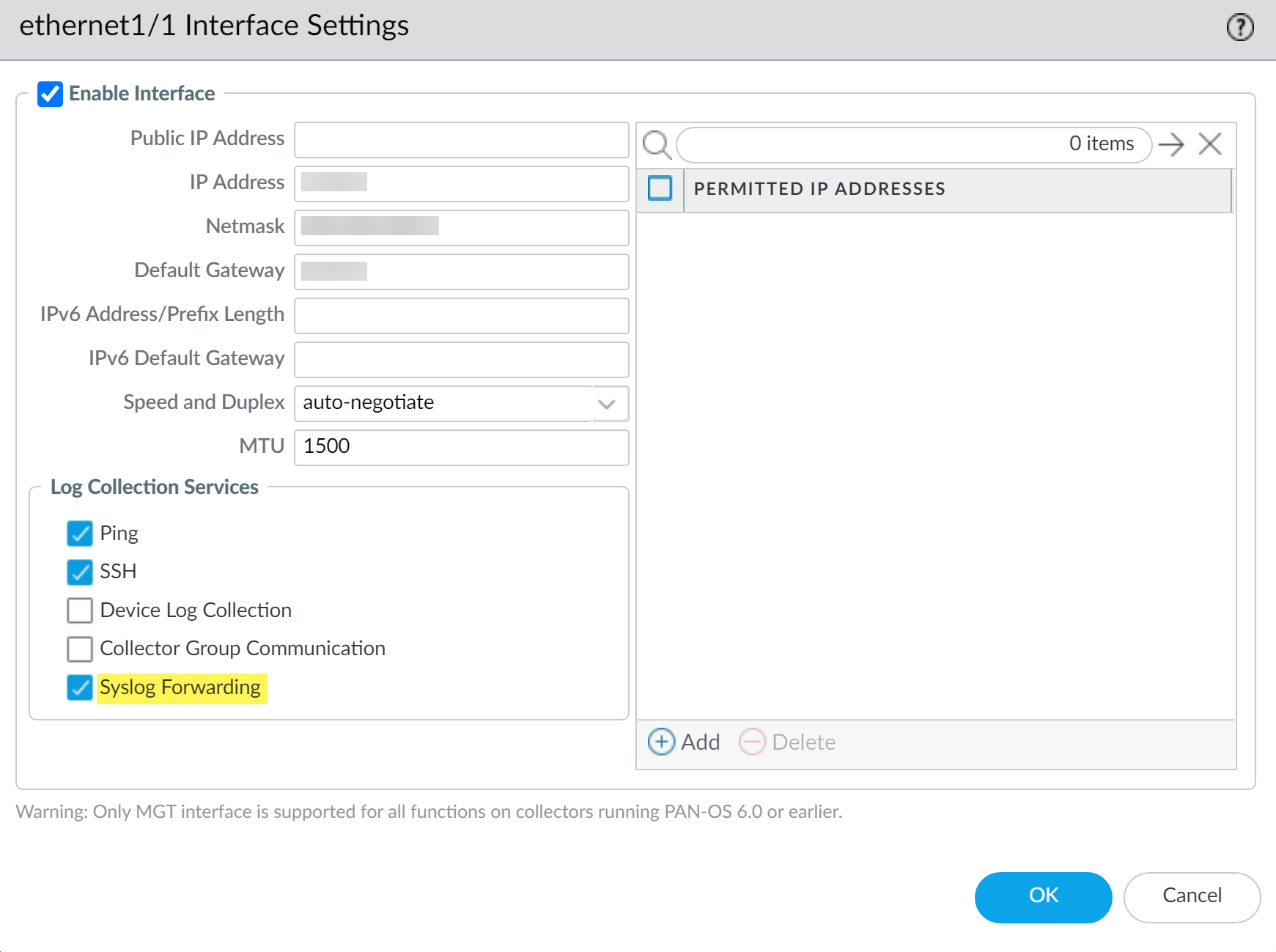 Use Ethernet interfaces to forward syslogs from the Panorama™