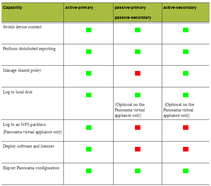 The following table lists the capabilities of Panorama based