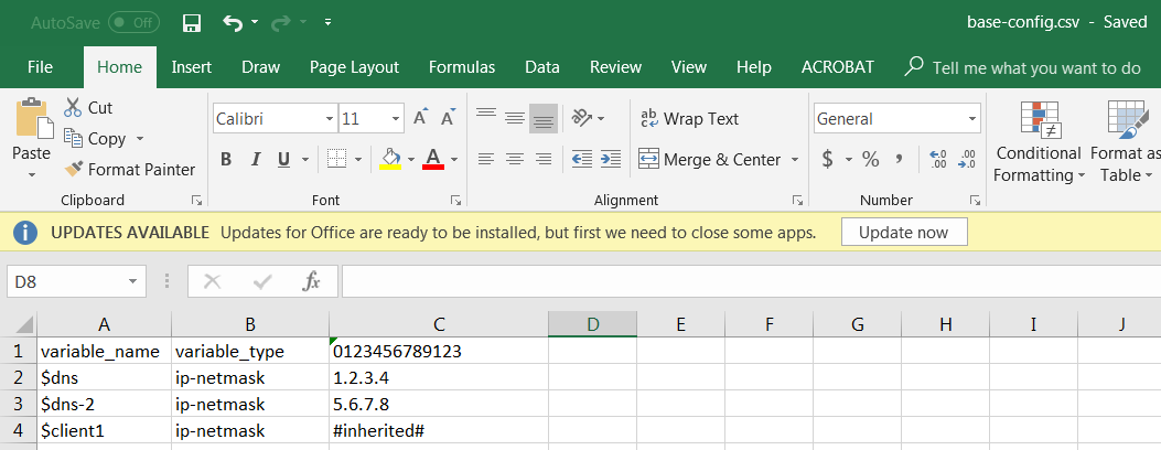 1. Correct the number of the cells containing the firewall serial number. Repeat this step for all firewalls in the CSV file.