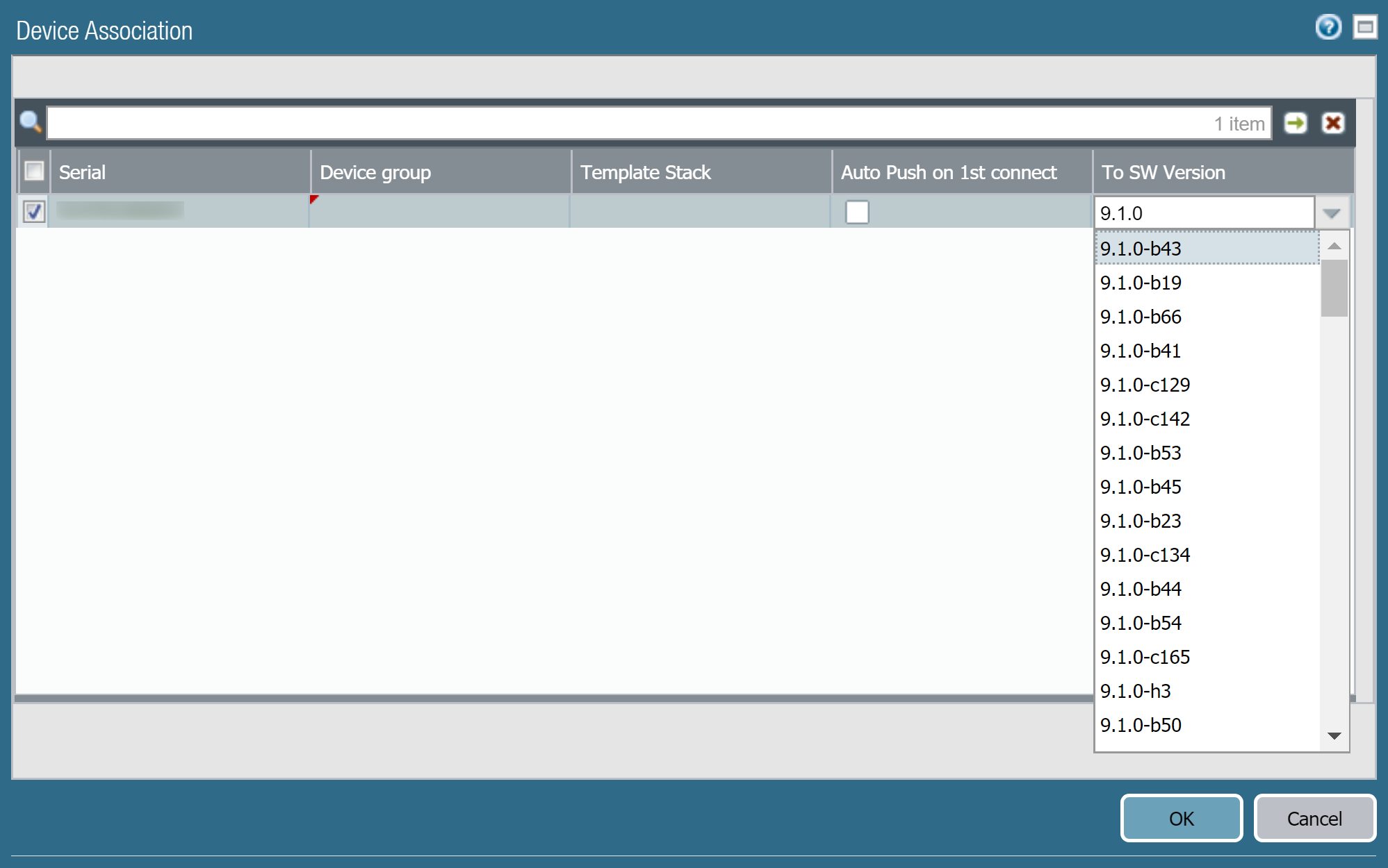 - In the To SW Version column, select the target PAN-OS version for the ZTP firewall.