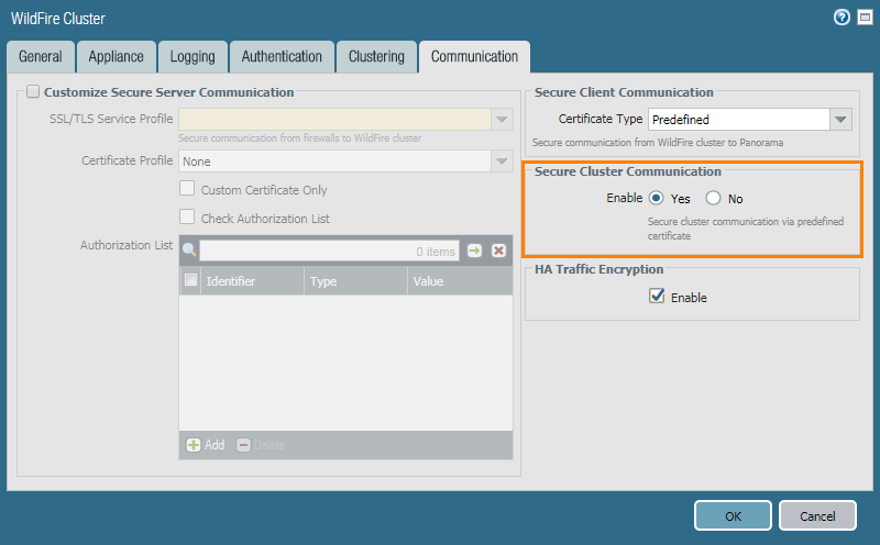 - On Panorama, select Panorama > Managed WildFire Clusters > WF_cluster_name> Communication.