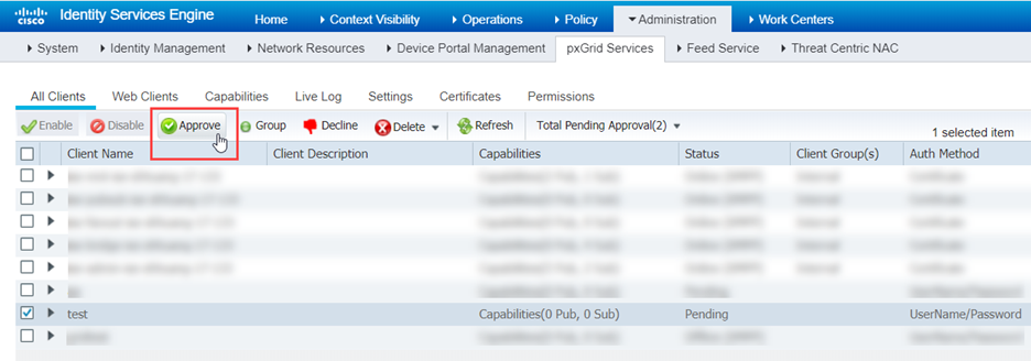 - Select AdministrationpxGrid ServicesAll Clients.