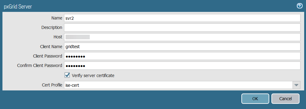 - In the Host field, enter the IP address or FQDN for your pxGrid server.