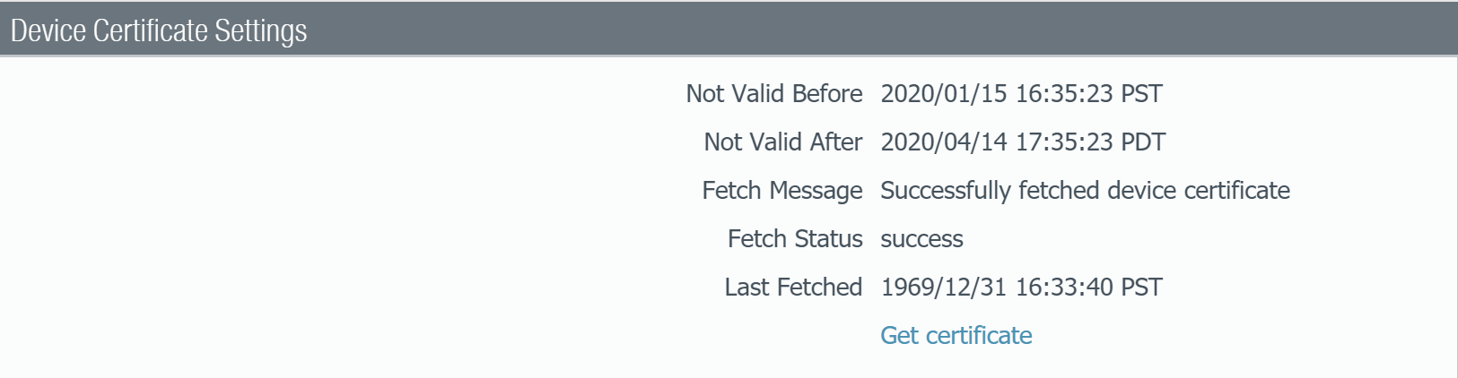 device certificate once. The device certificate has a 90-day lifetime. The firewall