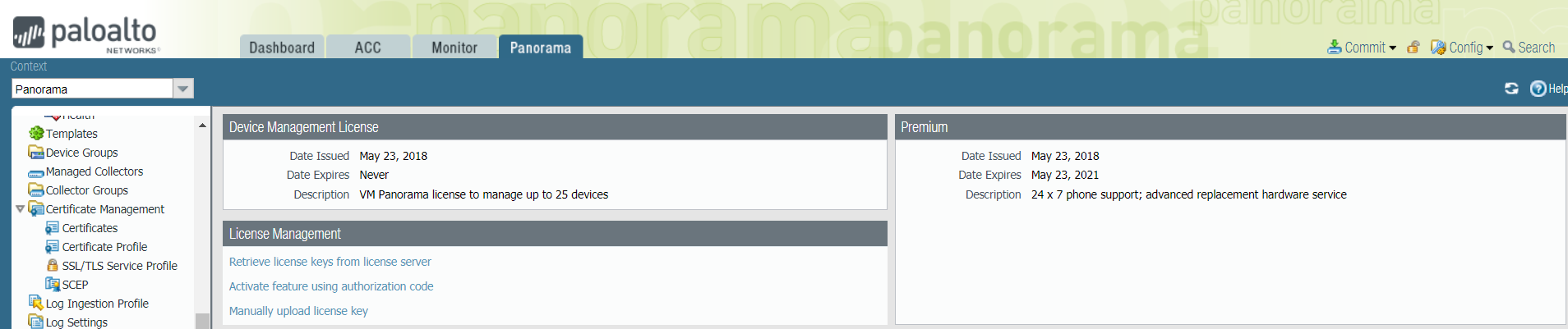 - Retrieve license keys from license server—Panorama automatically retrieves and activates the firewall management license from the Panorama Update Server.