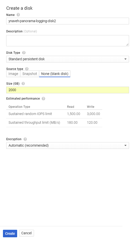 3. Create disk (Name drop-down).