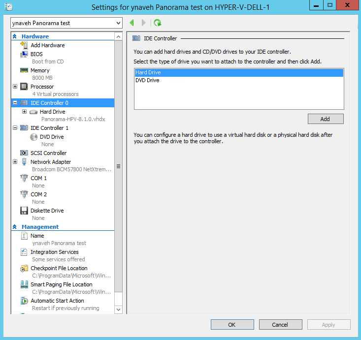 3. From the IDE Controller drives list, select Hard Drive and Add the new virtual logging disk.