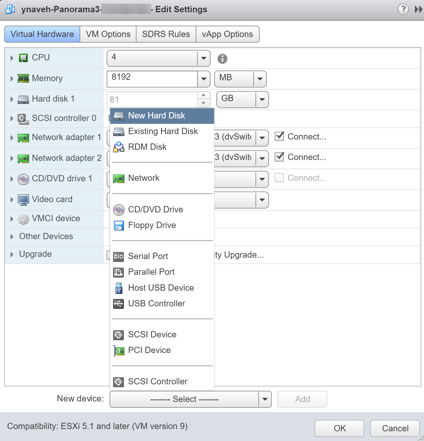 2. Select New Hard Disk as the New Device and Add the new device.