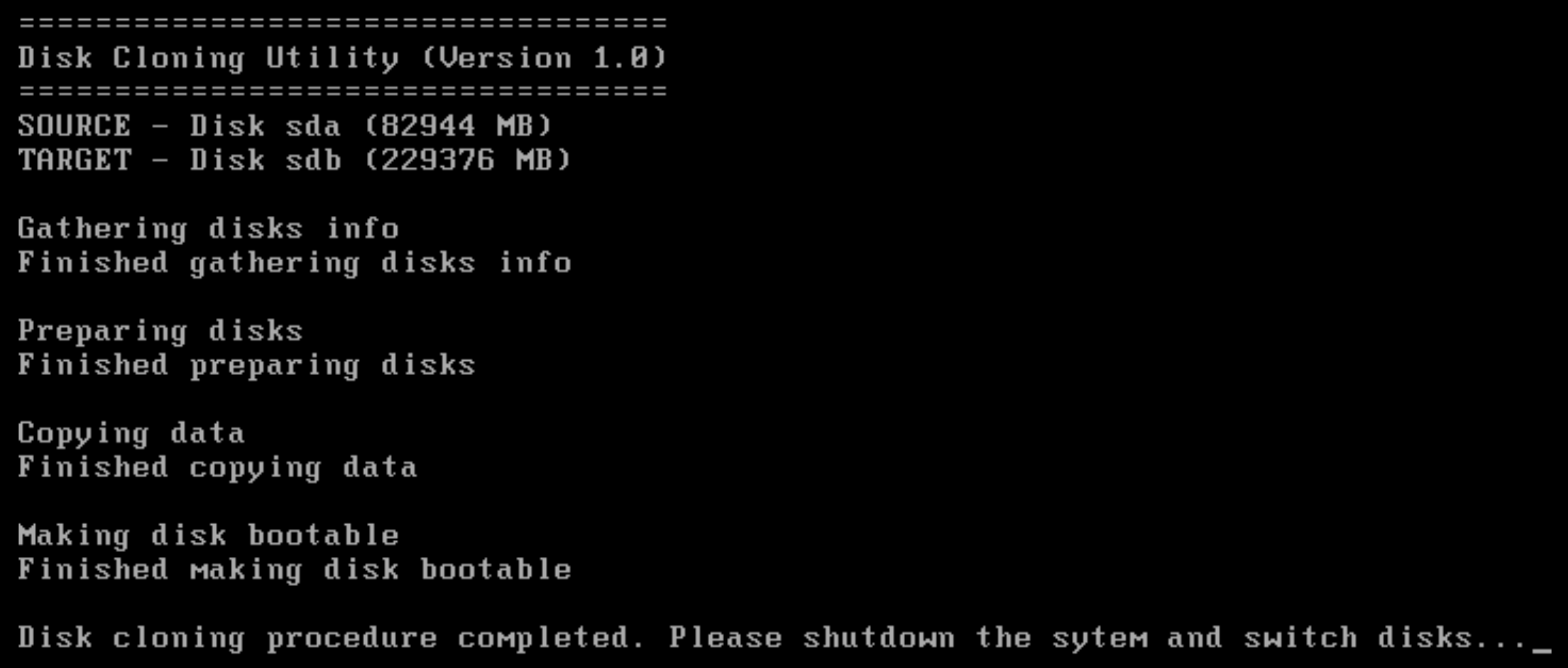 admin> request system clone-system-disk target sdb