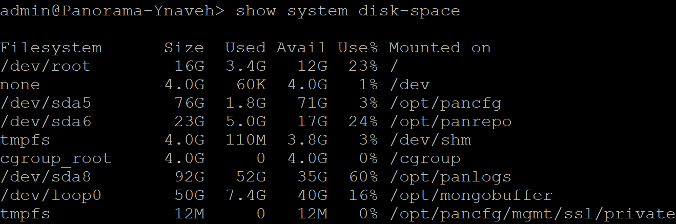 admin> show system disk-space